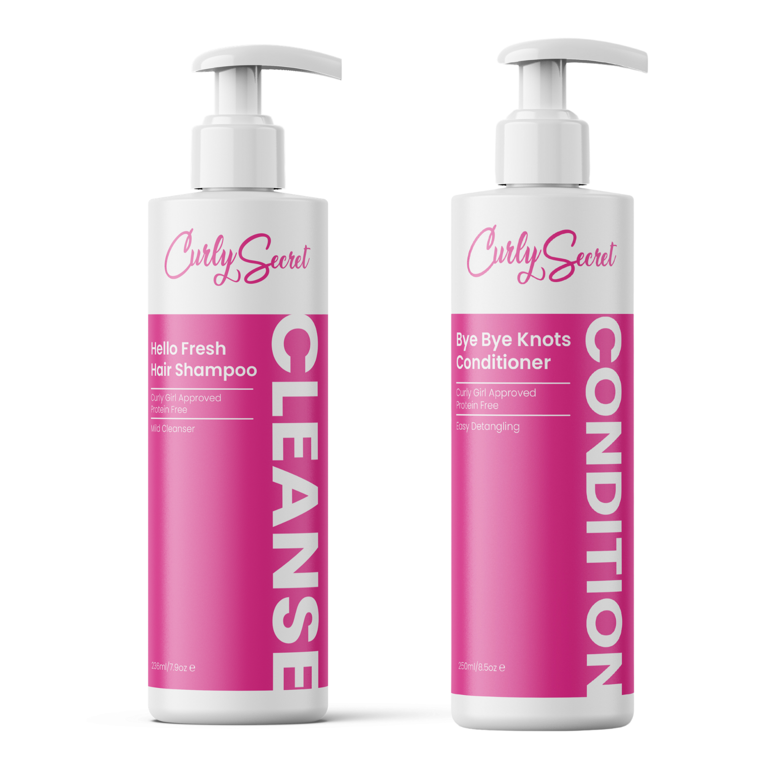 Rinkinį sudaro du mūsų populiariausi produktai: Curly Secret Hello Fresh Hair šampūnas ir Curly Secret Bye Bye Knots kondicionierius. Šampūnas efektyviai išvalo, o kondicionierius drėkina, švelnina ir suteikia blizgesį.